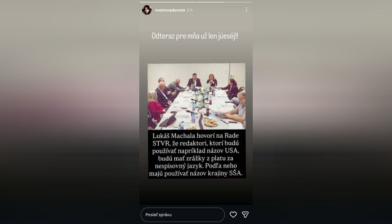 Krátko po zverejnení detailov zo zasadnutia prišli aj verejné reakcie známych osobností. Herečka, speváčka a politička Dorota Nvotová zvolila stručný, ale veľmi výstižný odkaz. Na Instagrame napísala: „Odteraz pre mňa už len júesej,“